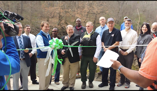 The newly constructed Grants Mill Road Canoe Launch at the Cahaba River Landing officially opened yesterday during a special ribbon cutting ceremony. Tommy Joe Alexander, Mayor of Irondale, did the honors live on WBRC FOX 6’s -Good Day Alabama Morning Show. The canoe launch and key improvements to the existing walking trails, will enhance public access to the Cahaba River in Irondale.