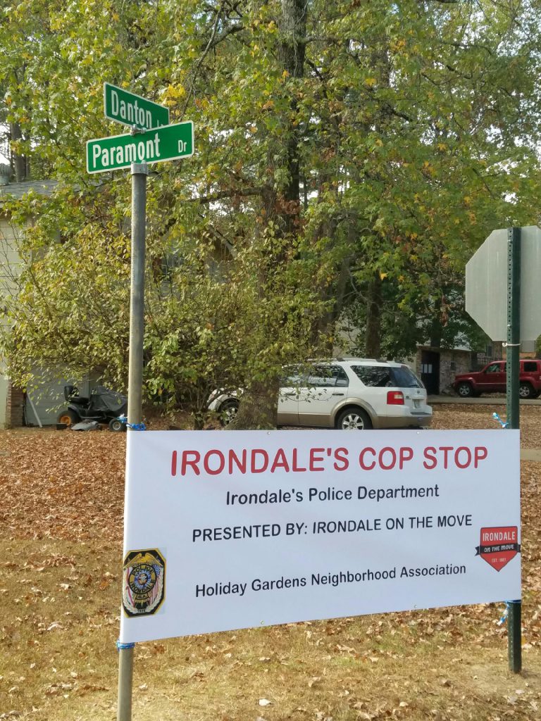 The Irondale Cop Stop is successful in large part due to a partnership between the Irondale Police Department, Irondale On the MOVE and the Holiday Gardens Neighborhood Association. Plans are to have Irondale Cop Stops in each Irondale District throughout 2017.