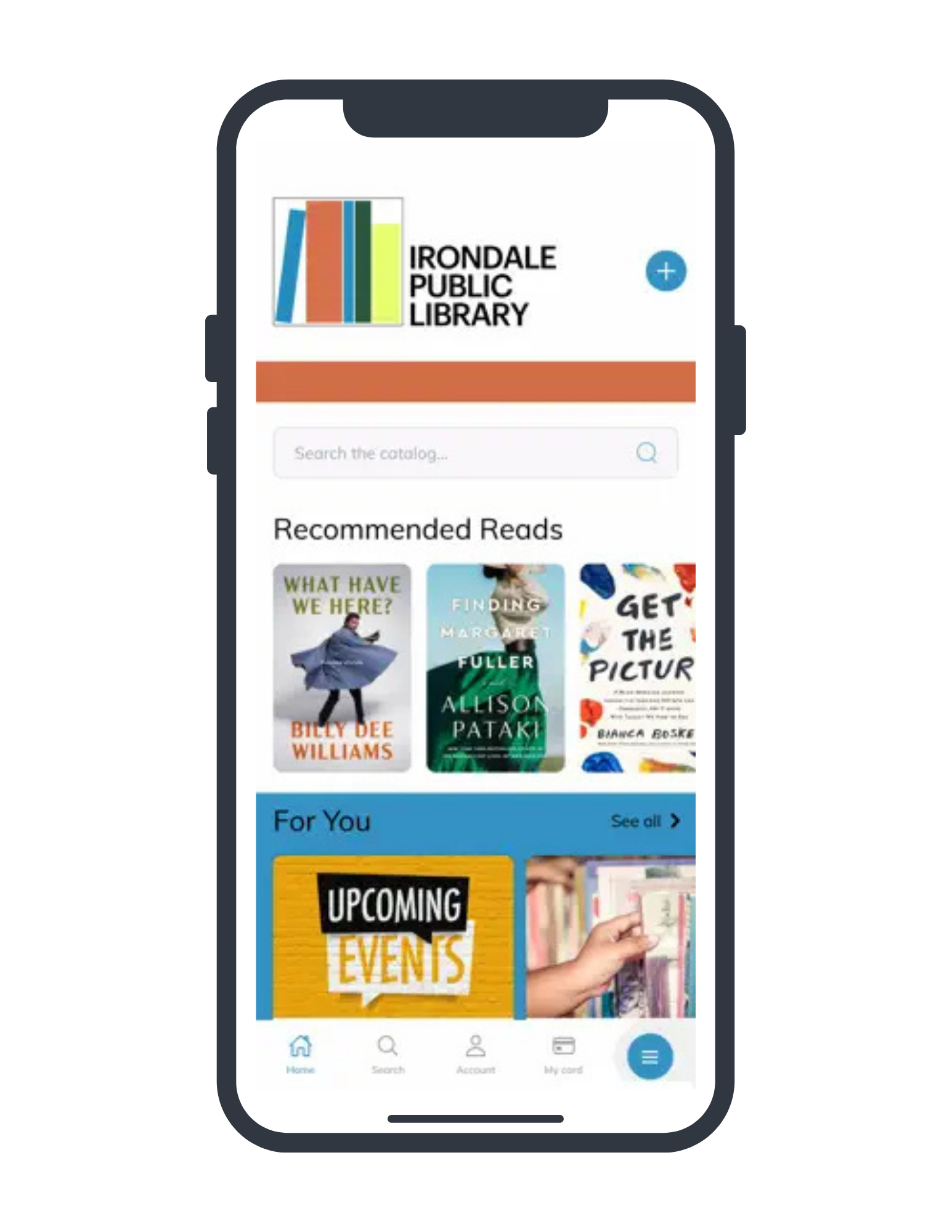 Irondale Library Mobile App Check out our Mobile App! Self-Checkout at the Irondale Library With Your Own Device Add Multiple Cards and Check Their Status Search our Catalog Place Holds Access Online Resources Add Your Card to Your Mobile Wallet And More!